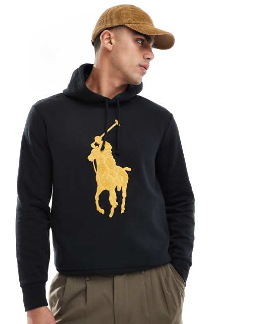 Polo Ralph Lauren - Sweat à capuche en molleton avec motif joueur oversize - Noir et doré
