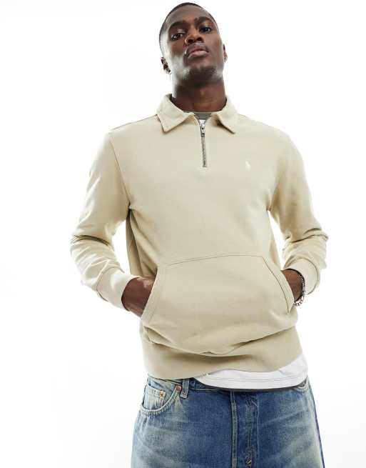 Polo Ralph Lauren - Sweat en tissu éponge bouclé avec logo emblématique et demi-fermeture éclair - Beige