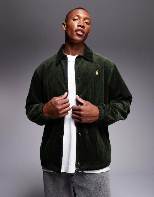 Polo Ralph Lauren - Veste d'entraîneur doublée en velours côtelé avec logo emblématique - Vert olive