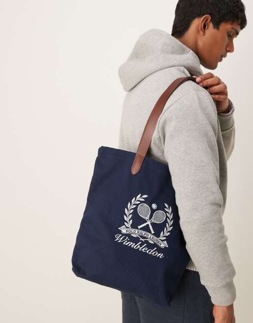 Polo Ralph Lauren - Wimbledon Capsule - Cabas taille moyenne en toile avec logo écusson - Bleu marine