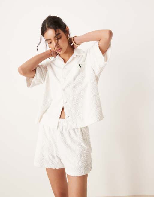 Polo Ralph Lauren - Wimbledon Capsule - Chemise d'ensemble à manches courtes en tissu éponge avec logo en jacquard - Blanc