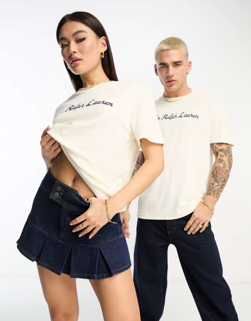 Polo Ralph Lauren x ASOS - Collaboration exclusive - T-shirt en tissu éponge avec inscription logo sur le devant - Crème