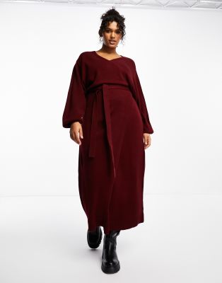 Pretty Lavish Curve - Beau - Robe portefeuille en maille avec lien noué à la taille - Prune