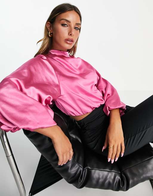 Pretty Lavish - Blouse d'ensemble courte à manches ballon - Rose millénial