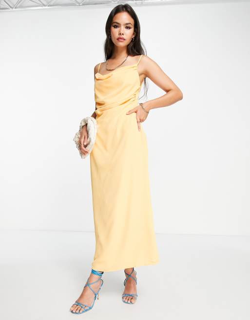 Pretty Lavish - Keisha - Robe longueur mollet froncée avec fente hauteur cuisse - Orange mat