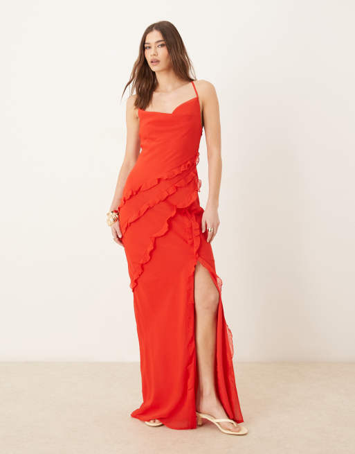 Pretty Lavish - Robe longue asymétrique à volants - Rouge vif