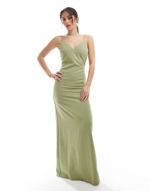 Pretty Lavish - Robe longue de demoiselle d'honneur en crêpe avec bretelles fines - Olive