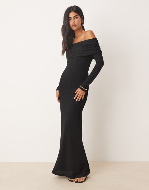 Pretty Lavish - Robe longue en jersey avec encolure bardot - Noir