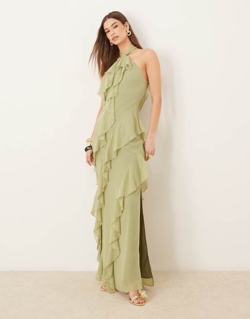 Pretty Lavish - Robe longue en mousseline à volants texturés - Olive