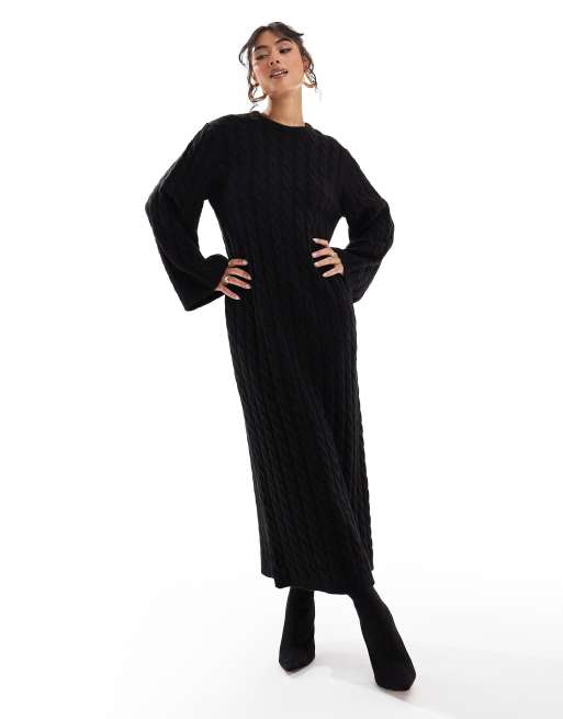 Pretty Lavish - Robe longueur mollet en maille torsadée - Noir