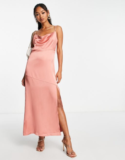 Pretty Lavish - Robe longueur mollet en satin à col bénitier - Brandy