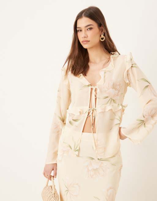 Pretty Lavish - Top volanté d'ensemble en mousseline texturée à fleurs - Crème