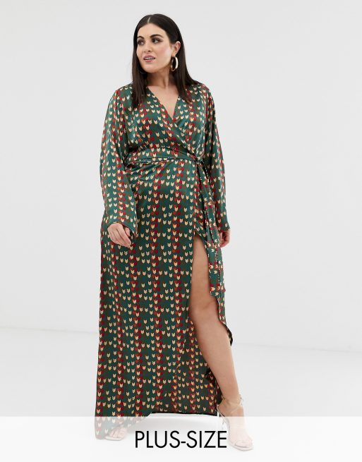 PrettyLittleThing Plus - Robe longue cache-cœur avec liens sur les côtés et à chevrons - Vert