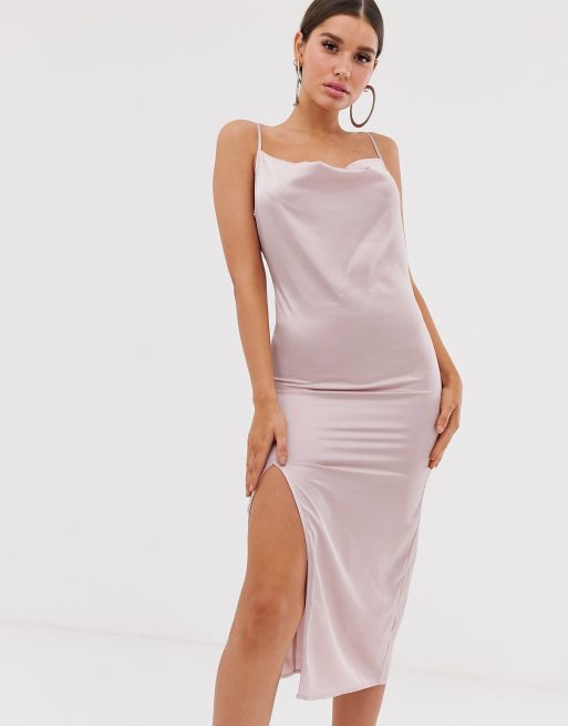 PrettyLittleThing - Robe mi-longue à bretelles en satin à col bénitier - Lilas