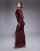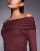 Princess Polly - Consideration - Robe longue en tulle à manches évasées, encolure Bardot et bord ondulé - Chocolat