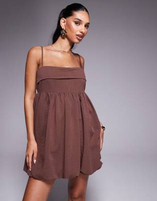 Princess Polly - Layken - Robe courte à rabat, encolure carrée, fines bretelles et ourlet boule - Marron
