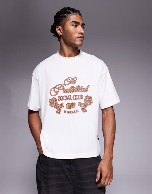 - Qu'il est bon de braver l'interdit avec la marque berlinoise Prohibited ! Inspirée de la ville allemande, la sélection Prohibited d'ASOS fait des clins d'œil aux styles streetwear de toute la planète. Tu y trouveras des sweats à capuche oversize et des pantalons de jogging assortis, suffisamment confortables pour ne pas les quitter, mais assez cool pour te donner envie de sortir. Quant aux t‑shirts de la marque, ils ont la coupe carrée que tu cherches.