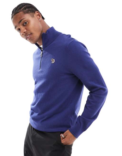 PS Paul Smith - Sweat à col zippé avec logo zèbre - Bleu
