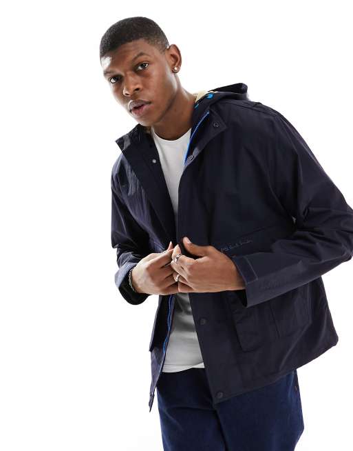 PS Paul Smith - Veste à capuche style pêcheur en nylon avec 2 poches - Bleu marine