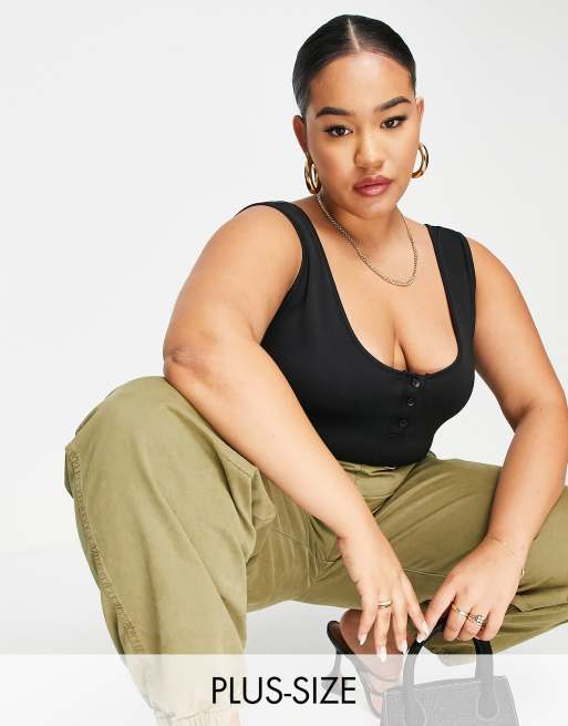 Public Desire Curve - Body boutonné à l'avant à taille haute et double épaisseur - Noir
