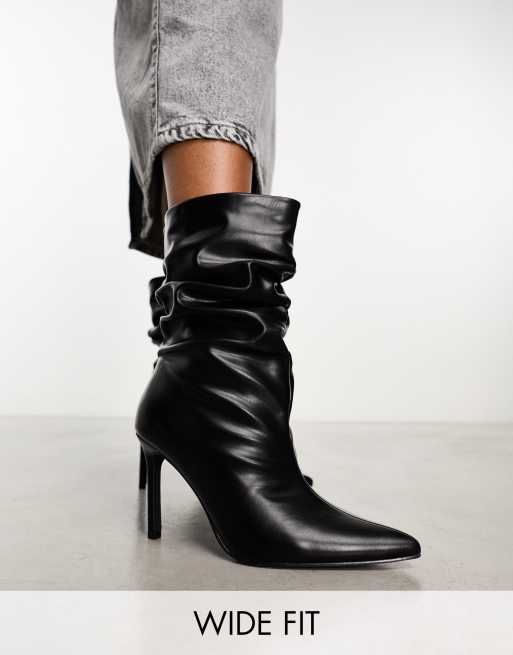 Public Desire Wide Fit - Lilu - Bottines froncées à talon - Noir