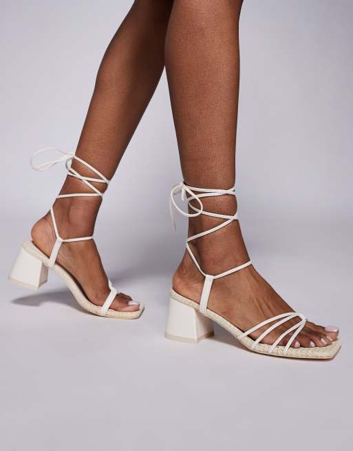 Public Desire Wide Fit - Saffira - Sandales à talon mi-haut avec liens aux chevilles - Crème