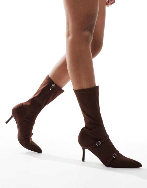 Public Desire - Denny - Bottines à talon à enfiler avec boucles - Marron