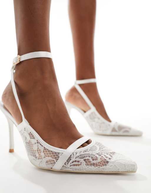 Public Desire - Estella - Chaussures de mariée à talon en dentelle - Blanc