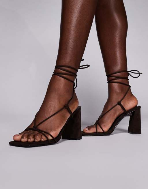 Public Desire - Karia - Sandales à talon carré en suédine avec lanière nouée sur la jambe - Marron