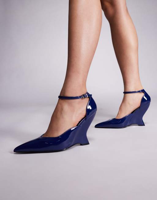 Public Desire - Mannequin - Chaussures vernies à talon compensé et bout pointu - Marine