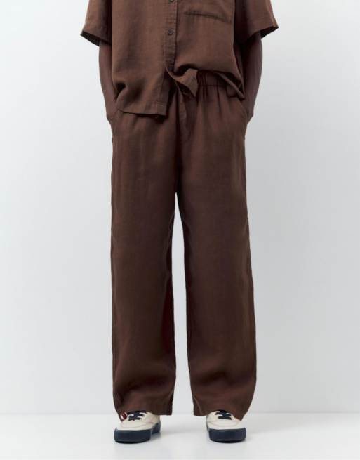 Pull&Bear 100Pantalon de jogging en lin mélangé à fines rayures - Marron