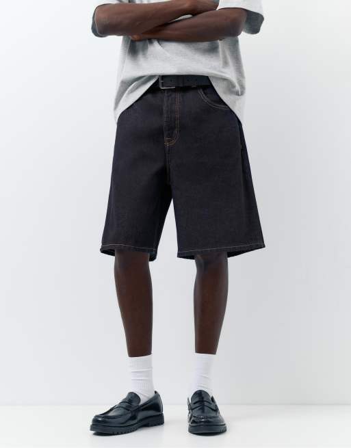 Pull&Bear - Bermuda décontracté baggy en jean - Bleu marine