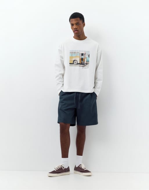 Pull&Bear - Bermuda en lin mélangé - Bleu foncé