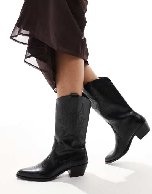 Pull&Bear - Bottes style santiags en imitation cuir à surpiqûres - Noir