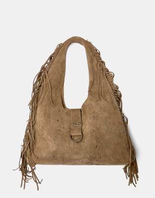 Pull&Bear - Cabas à franges - Marron