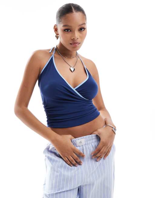 Pull&Bear - Caraco à bords contrastants - Bleu foncé