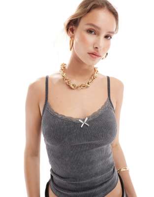 Pull&Bear - Caraco côtelé avec bords en dentelle - Gris