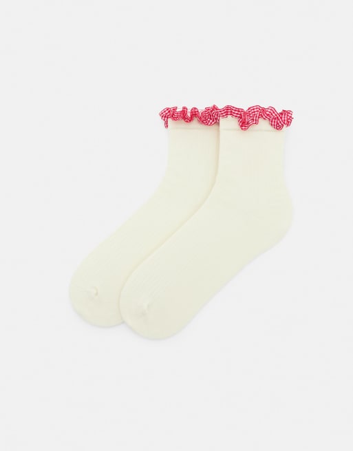Pull&Bear - Chaussettes avec bordure en dentelle - Rouge