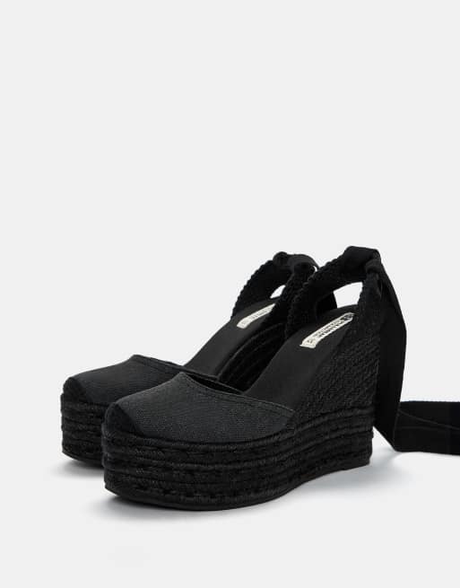 Pull&Bear - Chaussures compensées style espadrilles - Noir