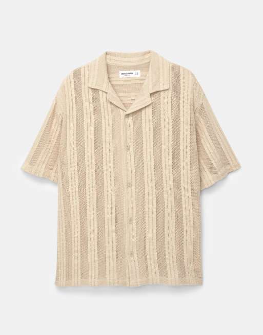 Pull&Bear - Chemise à manches courtes en broderie cutwork - Sable