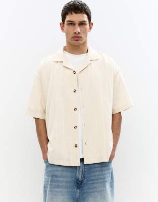 Pull&Bear - Chemise à manches courtes en lin mélangé - Beige