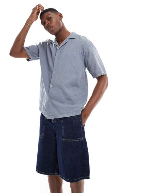 Pull&Bear - Chemise à manches courtes riche en lin - Bleu