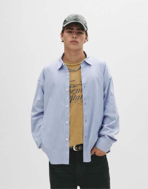 Pull&Bear - Chemise à manches longues - Bleu