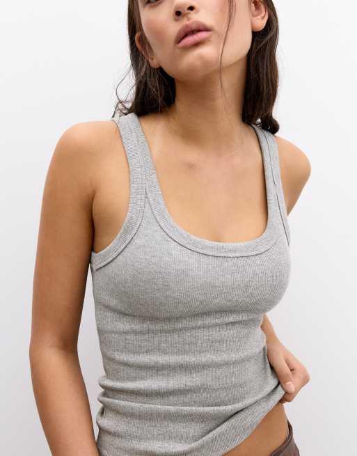 Pull&Bear - Débardeur côtelé - Gris chiné