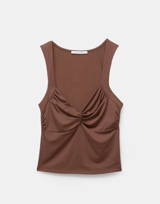 Pull&Bear - Débardeur noué en polyamide - Marron