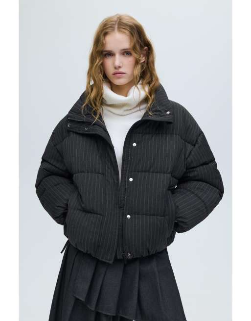 Pull&Bear - Doudoune à rayures fines - Gris moyen