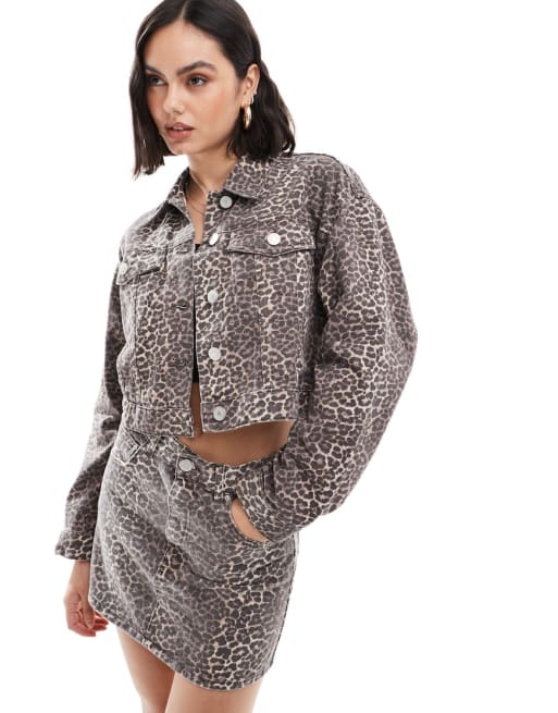 Pull&Bear - Ensemble jupe et veste en jean à imprimé léopard