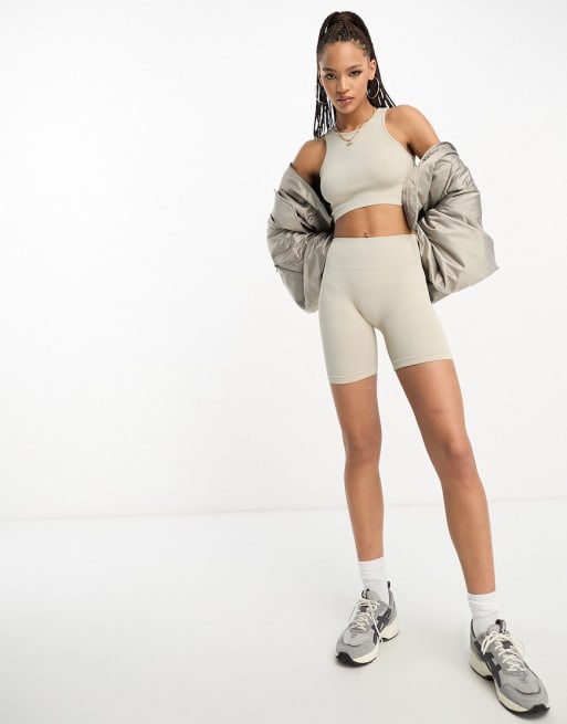 Pull&Bear - Ensemble top et short legging sans coutures - Sable