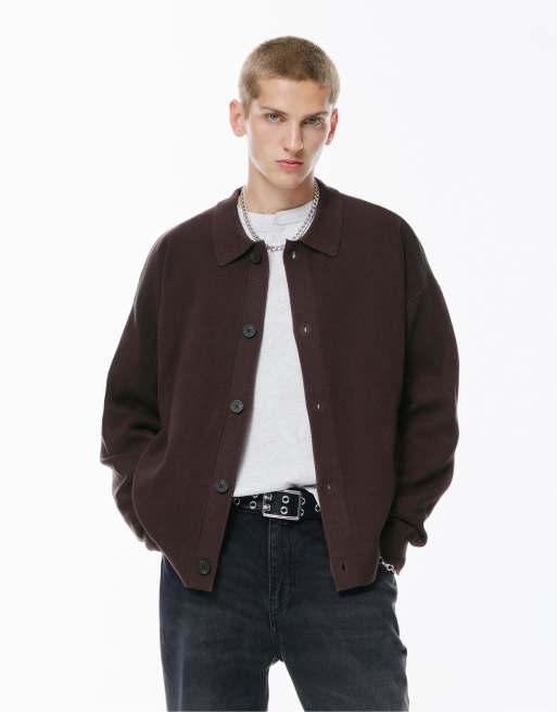 Pull&Bear - Gilet imprimé à col polo - Marron foncé