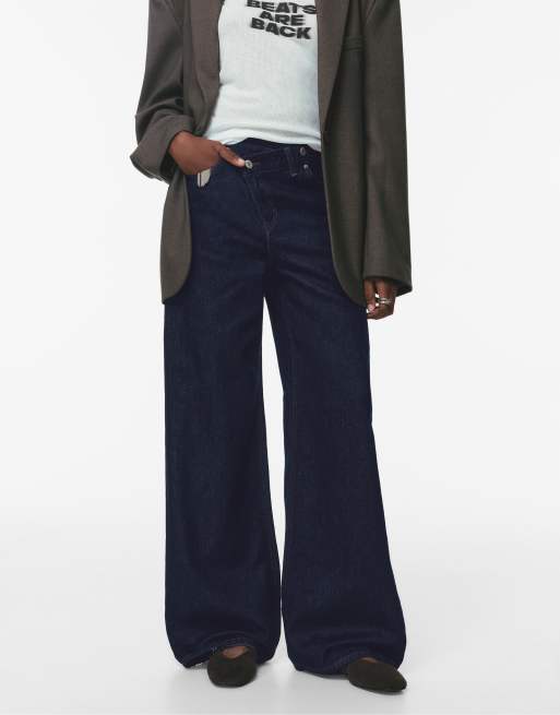 Pull&Bear - Jean ample à taille croisée - Bleu marine